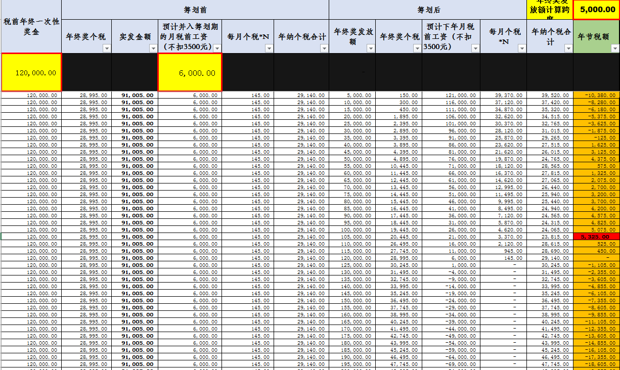 【年终奖的避税区有多大呢?】——答案:6个避税区