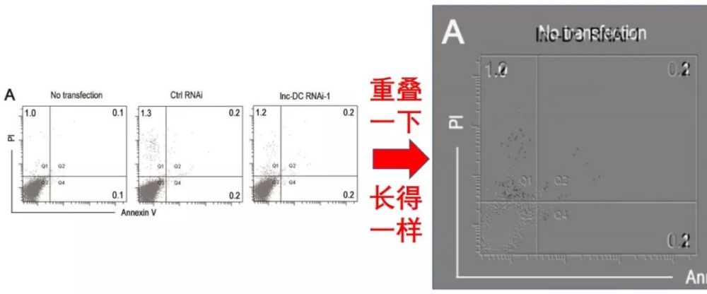 比如这篇《The STAT3-binding long noncoding RNA lnc-DC controls human dendritic cell differentiation》,2014年的Science。在Supplementary里的俩图对比后发现,竟然有部分点是完全重合了!