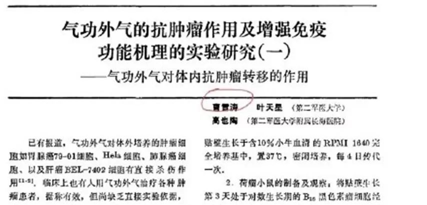 什么“创下世界纪录”、“墙内禁止报道”、“硕士研究气功”,净胡扯。人家硕士课题是《白细胞介素Ⅱ激活的肿瘤浸润性淋巴细胞抗肿瘤作用的实验研究》。气功的事我们后面会单说。
